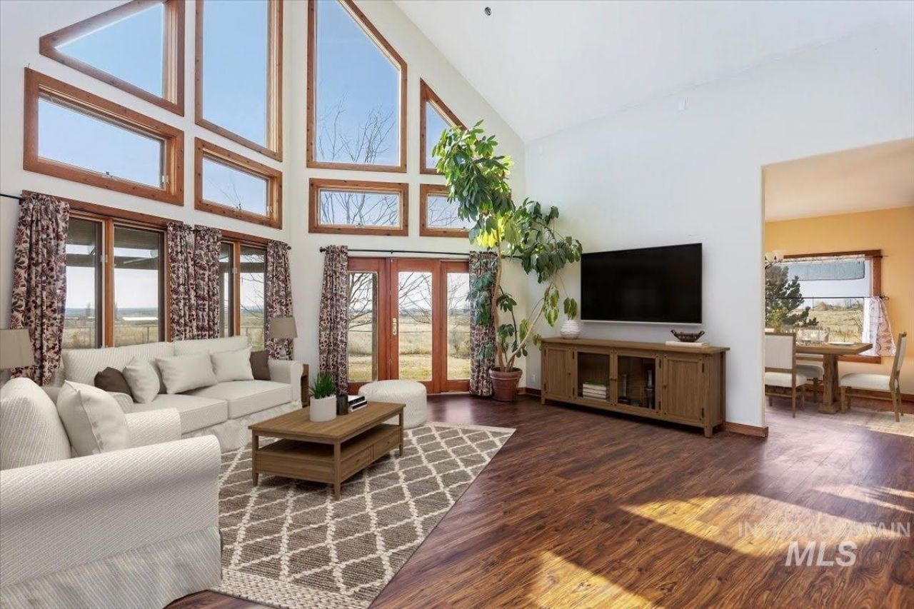 Enjoy peaceful country living with breathtaking valley views on this beautiful 9-acre property with valuable water shares. This 3-bedroom, 2-bath home is filled with natural light and offers a functional, open layout ideal for everyday living and entertaining. The kitchen features granite countertops and generous cooking and prep space, perfect for those who love to cook. Unfinished basement plumbed for an additional bathroom gives endless possibilities for living expansion! Step outside to the back porch with pergola and hot tub hookups?an ideal spot to relax and take in the views. The property offers abundant storage, room for animals, and space to grow with a garden area already established with raspberries and a peach tree. A rare opportunity to enjoy space, views, and country charm while still having the comforts of home.