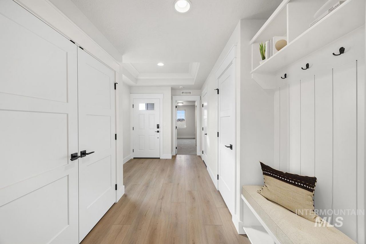 The TROON- 3-Car MODEL| Blackrock Homes. Located on corner homesite & across from common area for additional privacy. East facing backyard. Enjoy COMMUNITY POOL, pickle ball courts, walking paths, community dog parks & playground. Located in the gated neighborhood: The District at Skybreak Estates w/private pickle ball court, dog park & private streets. Featuring elevated finishes; upgraded cabinets, Bosch appliances, upgraded lighting plumbing & flooring. Baths feature tile floors, tile showers & under mount sinks. Generous sized great room, kitchen & dining room perfect for entertaining. Private guest suite & 3rd bdrm or office space gives you everything you need and nothing you dont. 3 car garage. Located on corner homesite w/one neighbor. Captures corridor views of the Boise Front foothills. Keyless door lock on front. INCLUDES FULL VINYL FENCING & FRONT & REAR YARD SPRINKLERS & LANDSCAPING. Just Blocks away from Discovery park. Easy access to YMCA, the interstate, Meridian, shopping, dining, & entertainment.