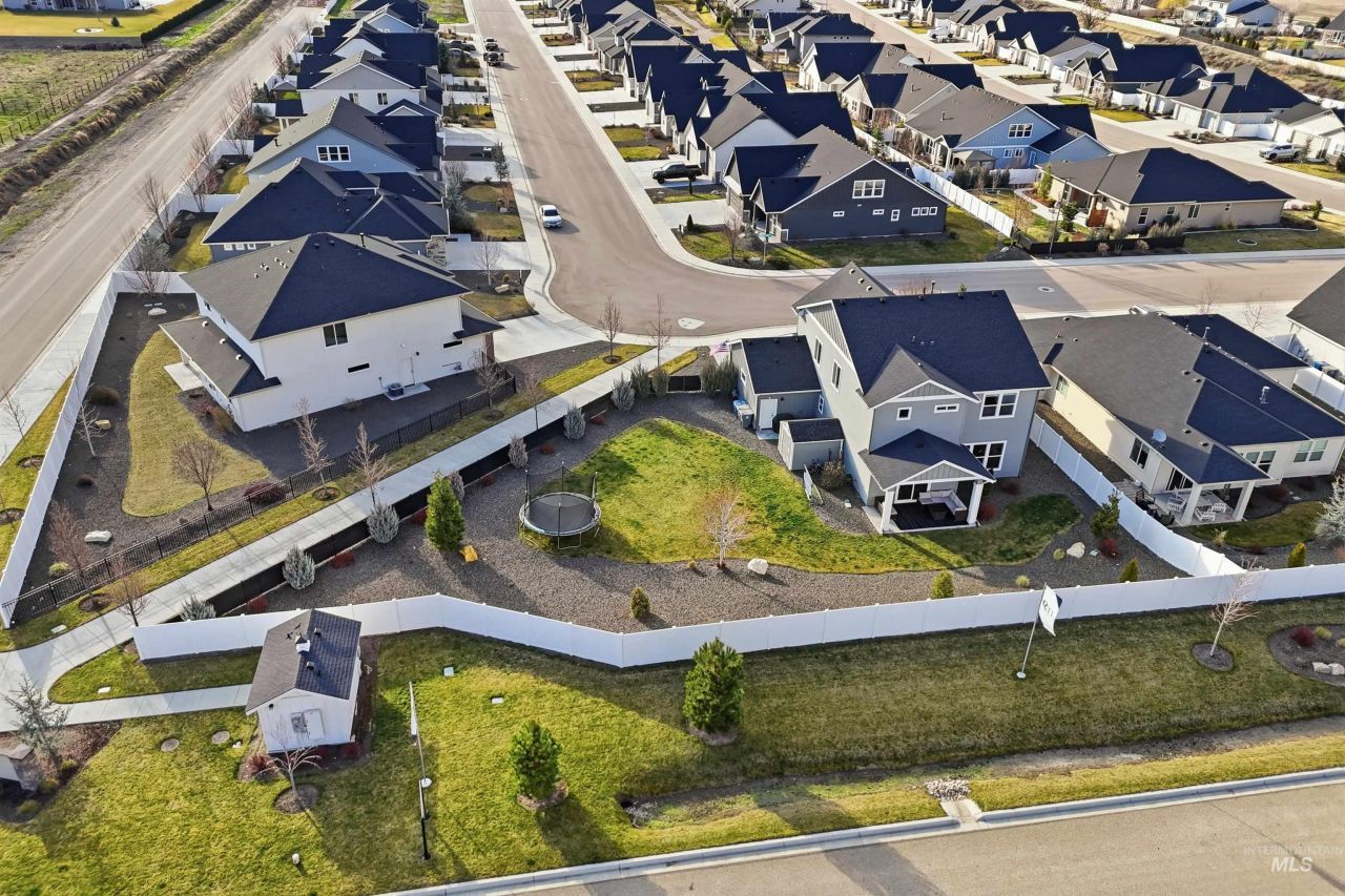 Located in a quiet Middleton subdivision with a community pond and common areas, this well-designed two-story home by Iron Oaks offers a functional layout with elevated finishes throughout. Featuring 4 bedrooms and 2.5 bathrooms, the home is built to balance everyday comfort with thoughtful design. The main living area brings together the kitchen, dining, and great room in a cohesive layout, creating a space that feels open while still defined. The kitchen is designed for both function and style, complete with ceiling-height custom cabinetry, soft-close doors and drawers, Bosch appliances including a 5-burner gas range, built-in wall oven and microwave, and a large island ideal for gathering and daily use. Upstairs, the primary suite offers privacy and a well-appointed bathroom with a full tiled walk-in shower and walk-in closet. Three additional bedrooms are also located upstairs and are thoughtfully positioned with a shared bathroom. The dining space opens to a covered patio through a large sliding glass door, allowing for easy indoor-outdoor living. Additional features include a dedicated laundry room, a functional mudroom drop zone, a 3-car garage, and established landscaping. Located within the Middleton School District and conveniently situated between Middleton and Star, this home offers access to nearby amenities while maintaining a quiet, residential setting.