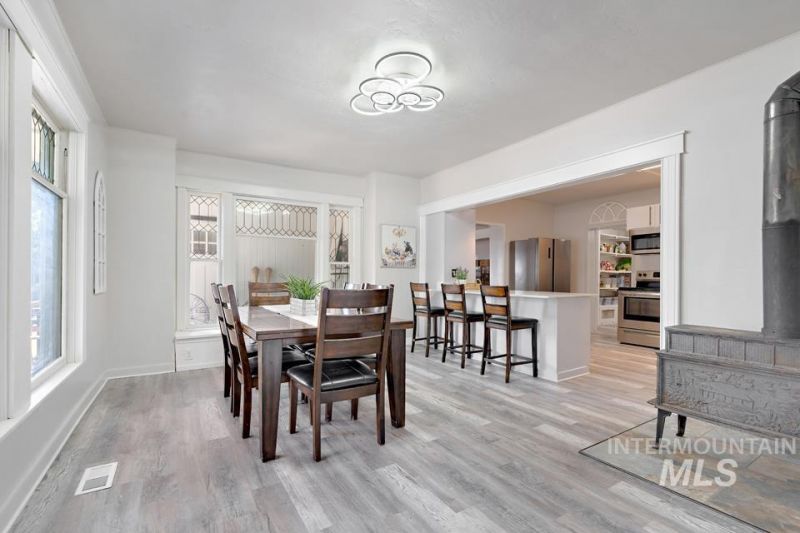 Nestled on a .32-acre corner lot, this updated early-1900s home is full of charm and versatility. Zoned commercial, its perfect for multi-generational living, a home-based business, rental income, or investment potential. The main floor offers 3 bedrooms and 1.5 baths on one side, plus an additional bedroom and full bath on the other?great for guests or tenants. The modern kitchen features white cabinets, quartz breakfast bar, LVP flooring, and a large walk-in pantry. The dining room includes a decorative fireplace and large windows for natural light. Two cozy family rooms, each with a pellet stove, provide inviting gathering spaces. Upstairs are 5 more bedrooms and a storage closet. A laundry room with outside access adds convenience. Bonus: a 14 x 30 attached workshop with electricity, ideal for hobbies or business use. Whether youre looking to live, work, or invest, this unique property offers endless opportunity in a peaceful small-town setting.